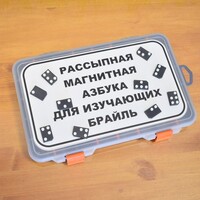 Рассыпная магнитная азбука для изучающих Брайль состоит из 69 магнитных фишек со шрифтом Брайля.